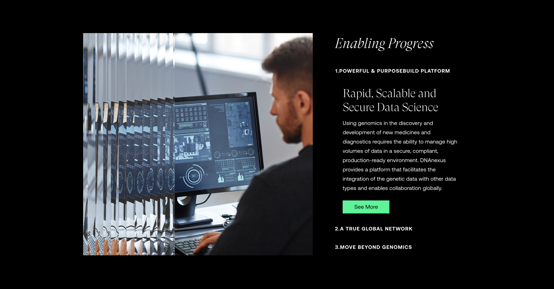 DNAnexus, a leader in precision health data management, reached out to us with a clear goal: they wanted a fresh, new look for their brand. They felt their current identity wasn't quite capturing their significant contributions to scientific research and patient care anymore. They were looking for a design overhaul that included everything from a new website to custom icons. We fueled the conversation with a brighter palette, strong contrast, and graphics that represented who they where.